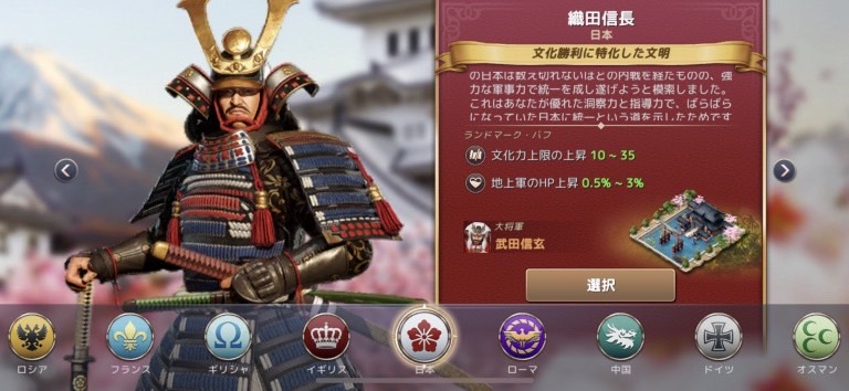 また、織田信長は日本語ボイスなので、好きな英雄がもし居なければ、織田信長さんが一番進めやすいぞ!